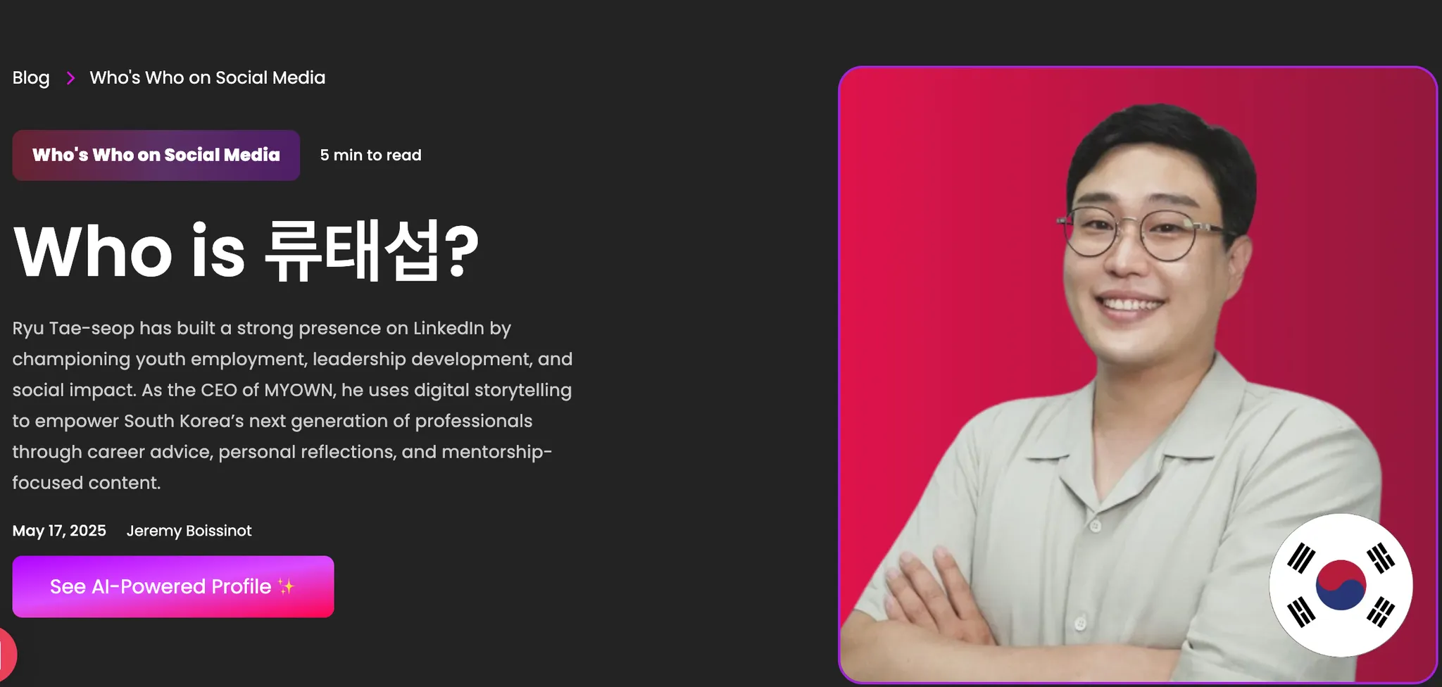 링크드인 팔로워 20K, 한국 TOP 5 ‘나다움 크리에이터’로 활동 중입니다. 일과 삶의 경계에서 얻은 인사이트를 글과 사진으로 전하며, 나다움의 순간을 기록합니다. 콘텐츠를 통해 일상의 의미와 성장의 여정을 공유합니다.